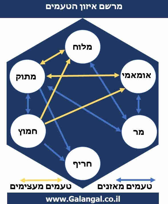 אני לא רוצה להכנס לכל נושא הטעמים וההגדרות שלהם והאם חריף הוא באמת טעם או שהוא רק תחושת כאב, את ההרחבה הזו אשאיר אולי לפוסט עתידי. היום אנסה להתמקד בחוקים וכלים שיעזרו למבשלים לשפר את הטעם של המנות אותן הן מגישים.